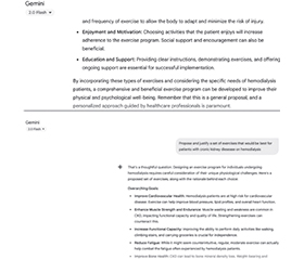 Background. Artificial intelligence (AI) is a direction of mathematical computer modeling based on the abstract essence of mathematical thinking. Chronic kidney disease (CKD) is a nosological unit, its final stage (end-stage renal disease) has seen an exponential increase over the past decade and is considered by the World Health Organization as a global problem by cause of death. The global healthcare industry is one of the main planes for practical application of modern developments in the field of AI thanks to machine learning algorithms that provide new opportunities for solving the most complex problems of medicine and pharmacy. The purpose was to analyze the possibility of using physical exercise complexes (PECs) created by AI system in patients with CKD undergoing renal replacement therapy and to compare PECs created by AI with the list of PECs used in clinical practice (systematic reviews and meta-analyses) for rehabilitation care in nephrology. Materials and methods. Scientometric analysis of professional literature from electronic databases PubMed, Embase, Scopus and Web of Science, Cochrane CENTRAL was conducted. According to the purpose of the study, the following methods were used: bibliosemantic, systematic approach, descriptive modeling using AI systems — Gemini and ChatGPT. Results. AI systems (Gemini and ChatGPT) proposed exercise programs for patients with CKD that take into account different stages of rehabilitation (respiratory, aerobic, strength, stretching and relaxation). At the time of the descriptive modeling, the database used by Gemini and ChatGPT is sufficient for their routine use in the development of exercise therapy complexes for the rehabilitation of nephrological patients with different nosologies. Conclusions. Artificial intelligence is a tool in the hands of a physician to provide medical care; the quality of this tool will depend on the qualifications of the physician who will teach (machine learning) AI to use their knowledge and competencies to optimize the process of creating rehabilitation complexes for patients with kidney disease from the standpoint of evidence-based medicine.